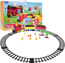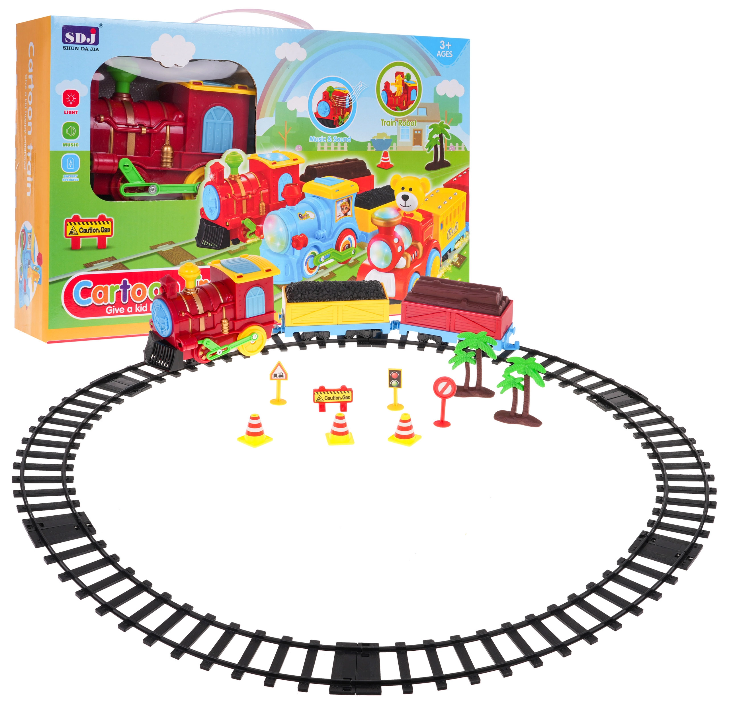 Descubre la divertida locomotora interactiva para niños a partir de 3 años con efectos de luces, sonidos realistas y elementos móviles. Incluye vía circular, 2 vagones (con carbón y con árbol) y accesorios de tráfico. La locomotora avanza hacia adelante, la cabina se abre durante la marcha y en su interior aparece una figura robótica: un juguete ideal para desarrollar la imaginación y la motricidad.