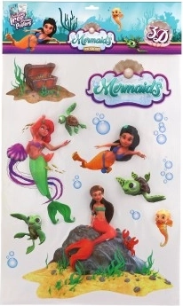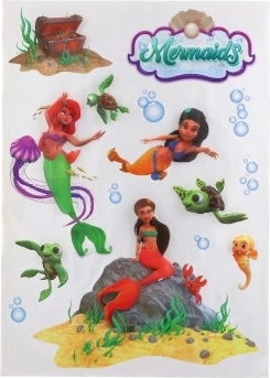 Encanta el cuarto infantil con la magia de las profundidades marinas. El set incluye varias pegatinas 3D de sirenas y motivos complementarios (peces, tortugas y más) que pueden colocarse libremente para crear una composición original. Las pegatinas están hechas de plástico de calidad, se adhieren bien a superficies lisas y se aplican fácilmente.