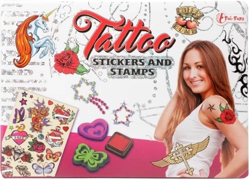 Este set creativo de tatuajes temporales y sellos ofrece a los niños mucha diversión decorando el cuerpo y el papel. En el paquete encontrarás láminas con motivos coloridos (corazones, flores, mariposas, anclas y más), sellos de espuma y una almohadilla de tinta para crear fácilmente. Ideal para fiestas infantiles, carnavales y manualidades de fin de semana en casa.
