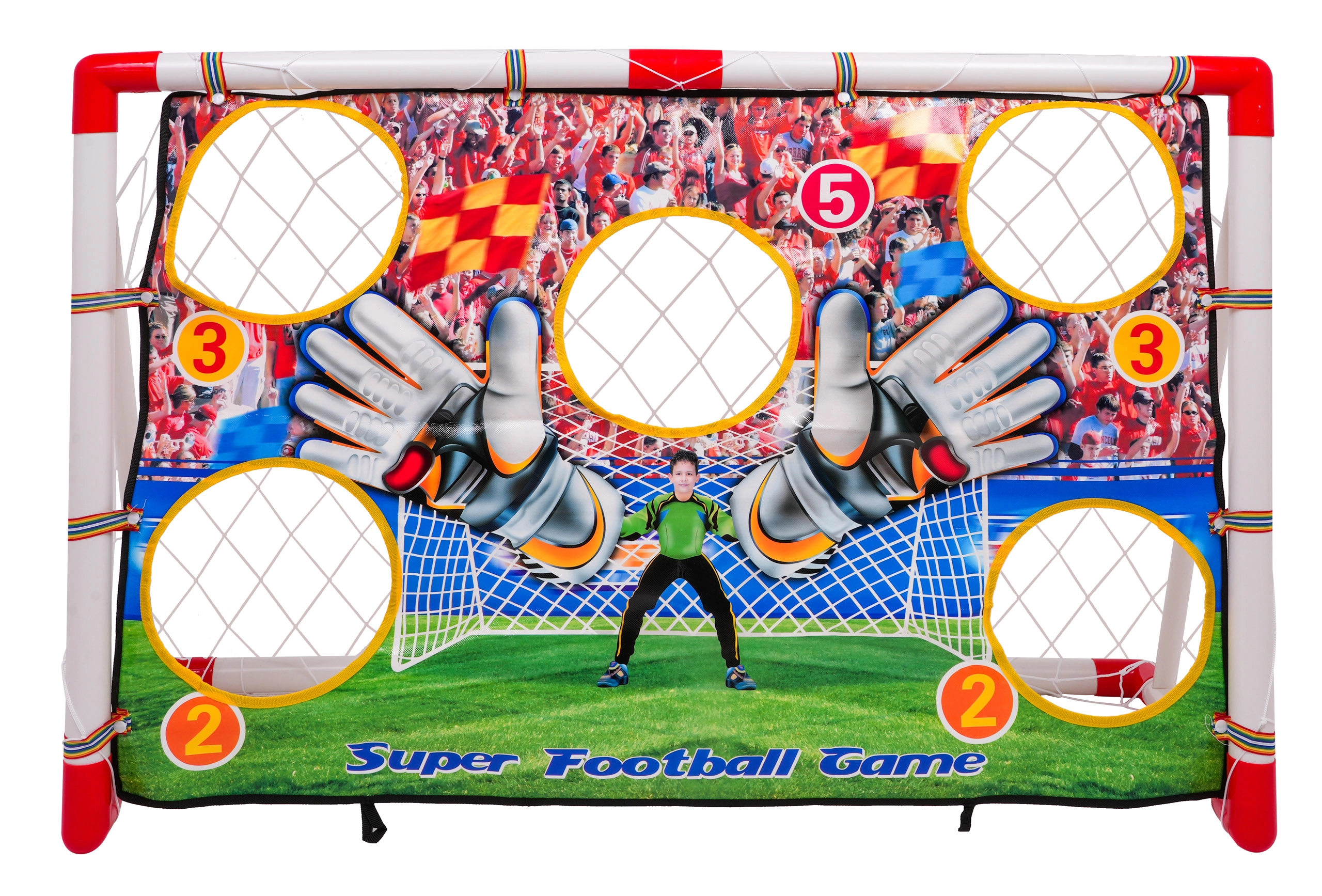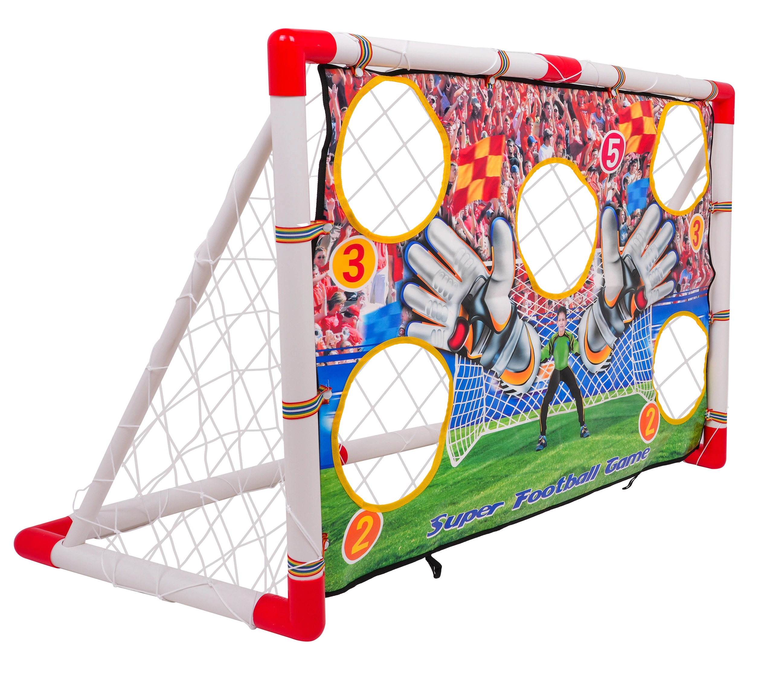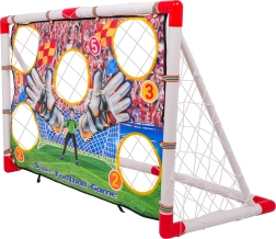 Esta mega portería de fútbol es la manera perfecta para que los niños desarrollen sus habilidades de tiro mientras se divierten. La portería está equipada con una diana con orificios puntuados que garantizan una experiencia de juego entretenida: