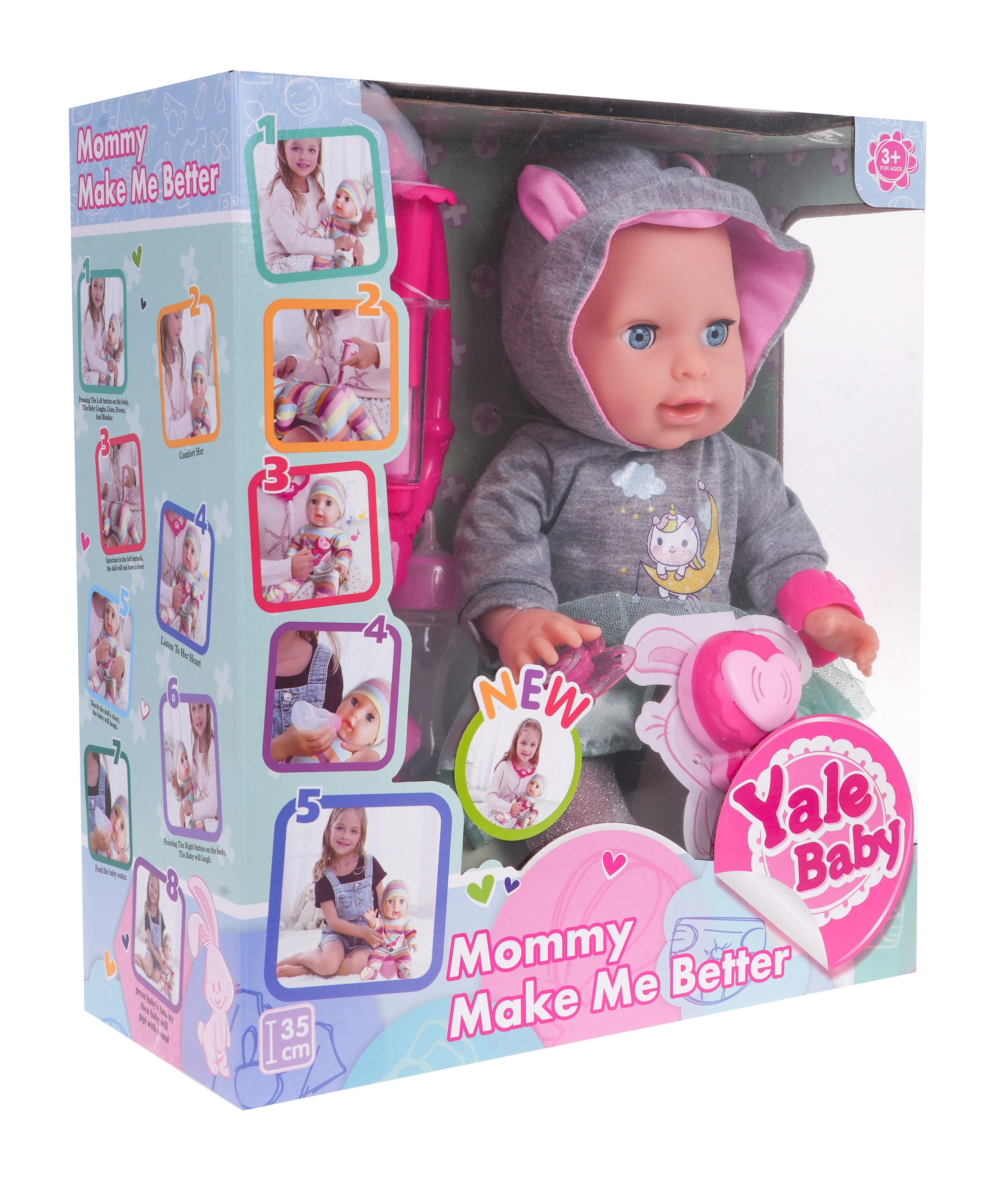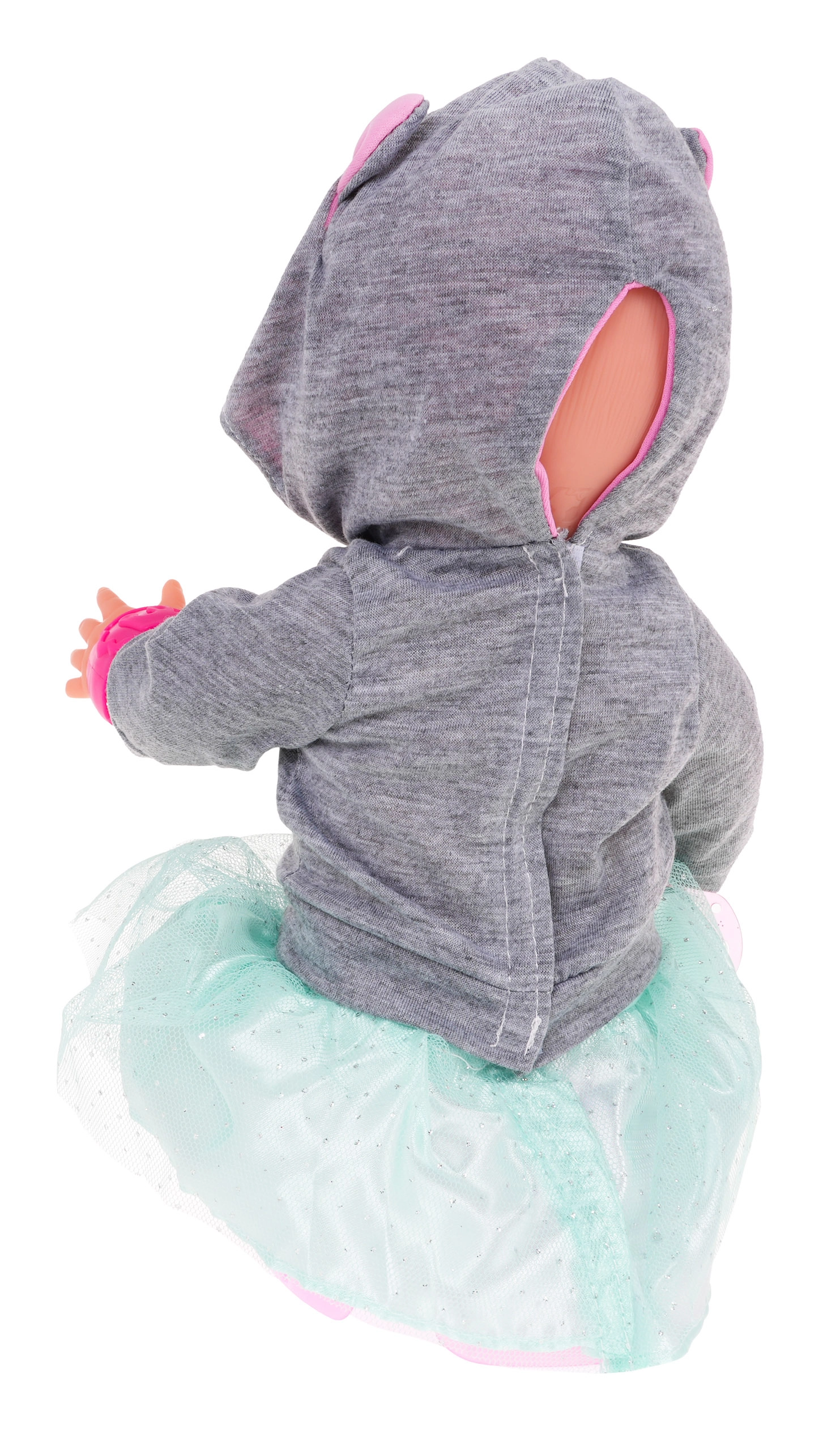 La muñeca tiene brazos y piernas móviles (manualmente), bebe agua y hace pis en el orinal. El chupete magnético la calma cuando llora. El efecto de “fiebre” con mejillas iluminadas impulsa el juego de roles de doctor y enseña los pasos correctos de cuidado.
