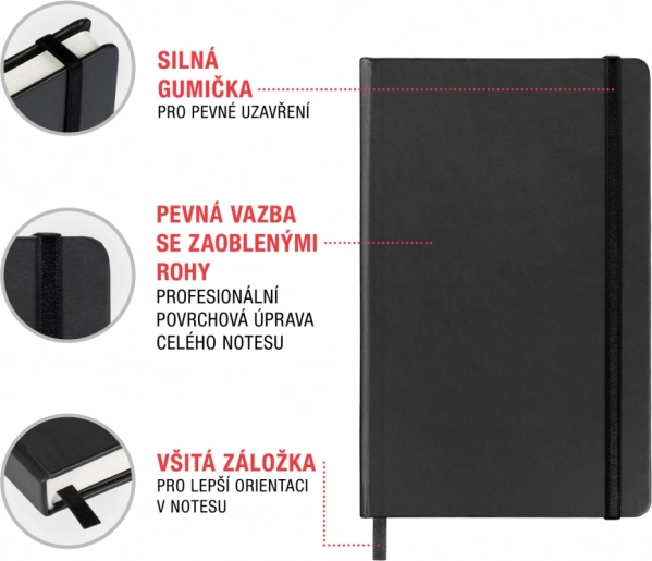 La banda elástica de cierre y el portabolígrafos aumentan la usabilidad del cuaderno para el uso diario.