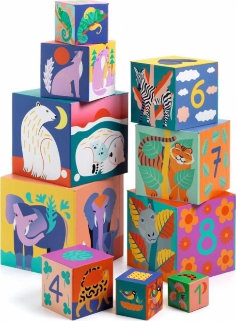 La colorida torre apilable de DJECO anima a los pequeños constructores a explorar el mundo de los números, las formas y los colores. Los niños pueden apilar los cubos uno sobre otro o encajarlos, desarrollando así la motricidad fina, la coordinación ojo–mano y familiarizándose de forma natural con el conteo y los animalitos. Con 10 cubos se construye una pirámide de 86 cm de alto, y derribarla es tan divertido como construirla.