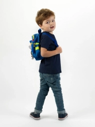 Tirantes ajustables, múltiples bolsillos y forro interior con motivo policial que facilitan la organización y el transporte de todo el set.