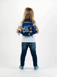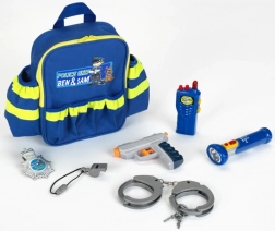 Descubre la divertida mochila policial BEN & SAM de la reconocida marca alemana Klein: un set completo para el pequeño guardián de la ley. Incluye mochila con elementos reflectantes, linterna funcional, radio de onda corta (imitación), silbato, placa policial, esposas de plástico y pistola de agua. Gracias a sus múltiples bolsillos y a su diseño resistente, guardar los juguetes es rápido, ordenado y seguro.