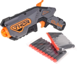 El bláster Blaze Storm con mecanismo de resorte garantiza un manejo sencillo sin necesidad de pilas. Basta con insertar el proyectil en la parte frontal, accionar la palanca amarilla y presionar el gatillo. Los proyectiles de espuma suave con punta de goma ofrecen una diversión segura para los niños.