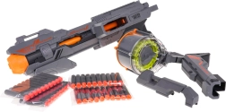 Presentamos la Mega Blaze Storm rifle gris, la opción ideal para niños y jóvenes que buscan diversión con estilo de ciencia ficción. Este juguete está equipado con 40 proyectiles que se insertan fácilmente en el cargador lateral. La rifle ofrece: