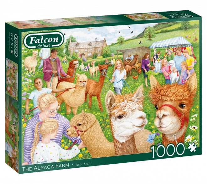 Disfruta de un rato de relax con el rompecabezas FALCON de gran calidad con un romántico motivo de granja rural y adorables alpacas. El puzzle de 1000 piezas ofrece un corte de precisión, colores nítidos y, una vez montado, mide aprox. 68 × 49 cm.