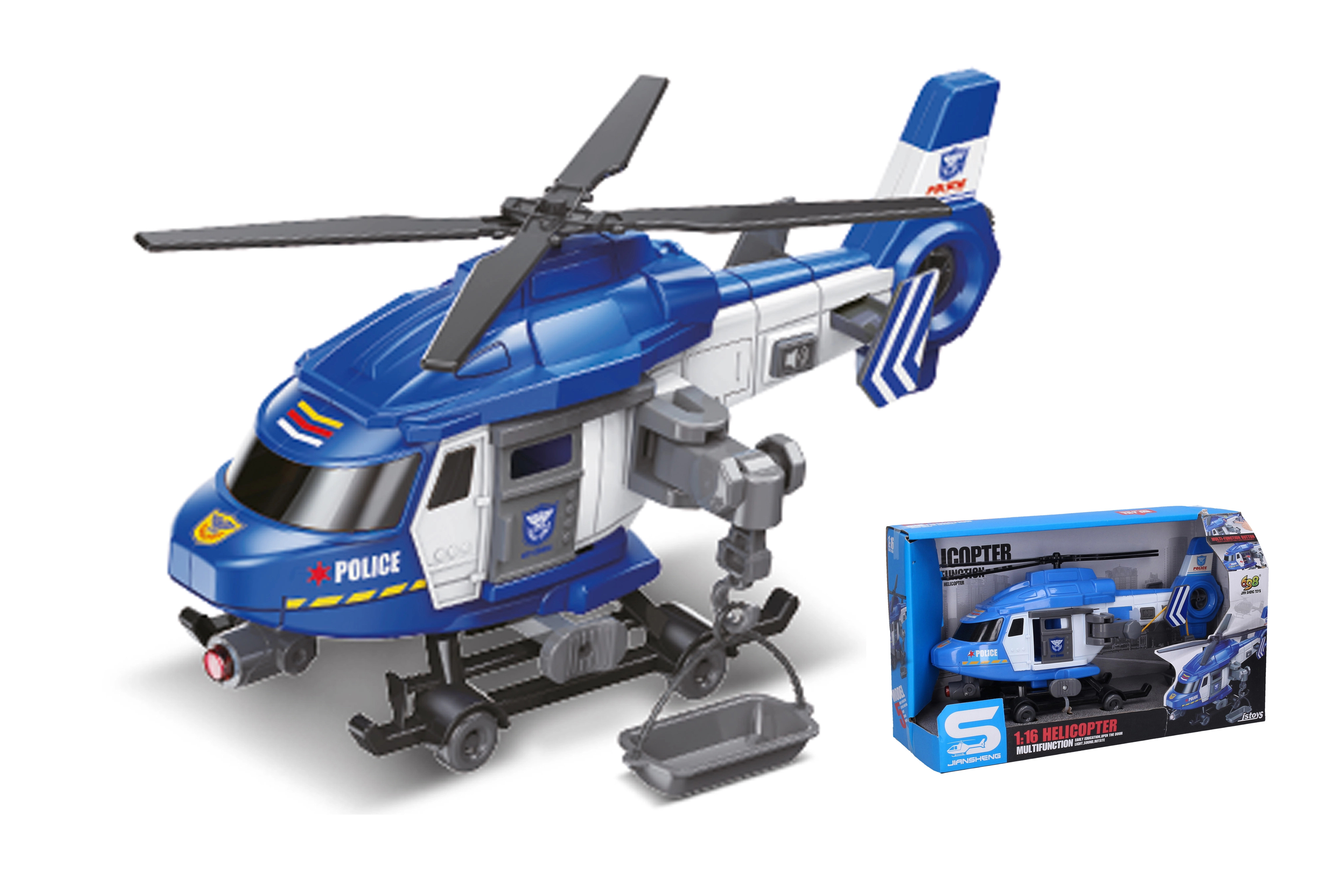 Helicóptero policial con efectos es ideal para todos los pequeños amantes de los helicópteros. Ofrece efectos de luz y sonido activados por un botón en el ala, que aumentan la experiencia de juego.