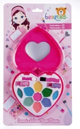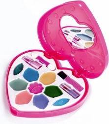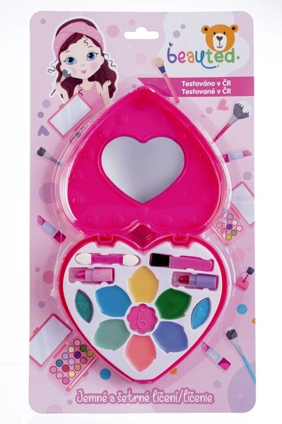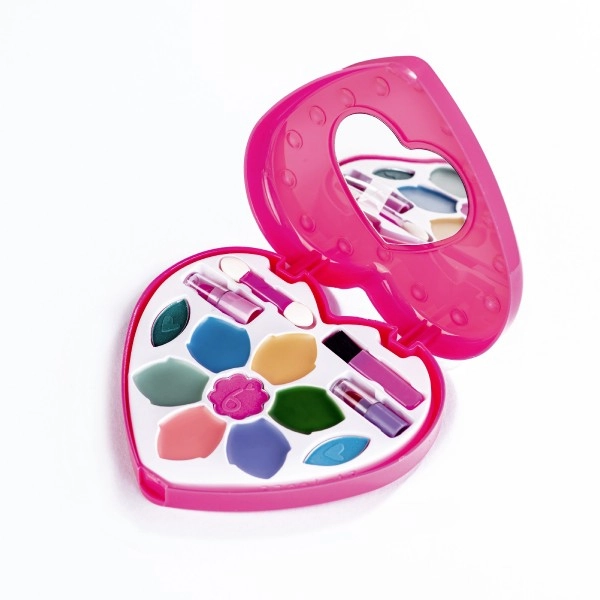 El set de cosméticos tiene forma de corazón con tapa transparente y espejo, lo que estimula la creatividad y ofrece una experiencia con estilo.