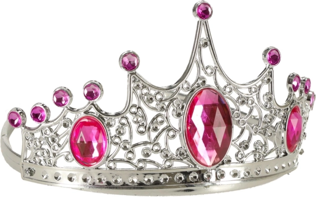 Tiara plateada con piedras rosas, collar y pendientes a juego aportan un brillo encantador a cualquier disfraz. Dos anillos completan el set hasta el último detalle.
