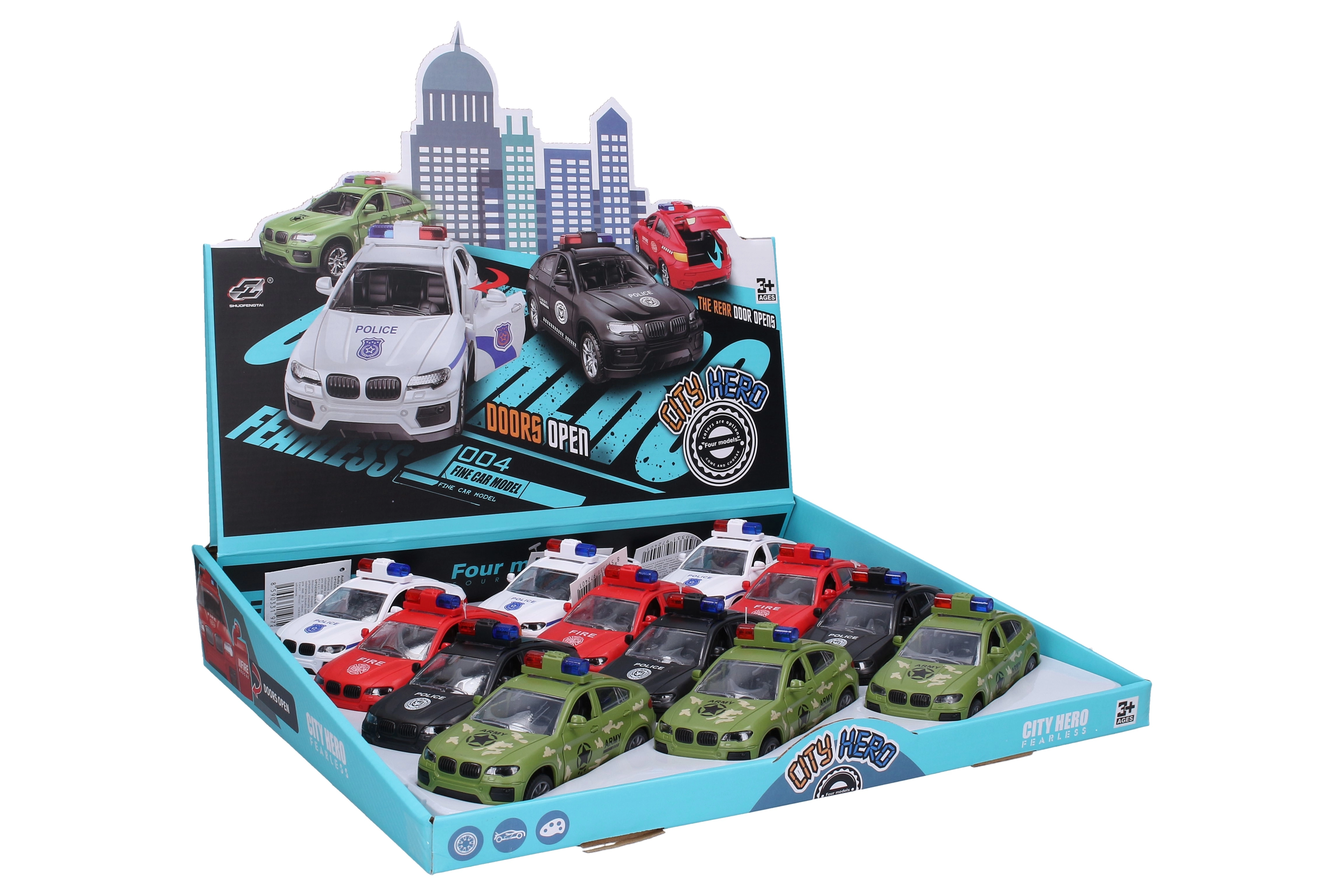 El compacto coche de rescate de 13 cm con mecanismo de fricción encantará a cualquier pequeño conductor. Tiene puertas y maletero abatibles, ofrece 4 variantes atractivas (bomberos, militar, policía SWAT, policía blanca) y se desplaza de maravilla gracias a su propulsión por inercia.