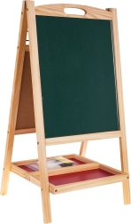 Está lista para usarse de inmediato, sin montaje: basta con sacarla de la caja y deslizar las bandejas inferiores. Las superficies de apoyo guardan con seguridad las tizas, el rotulador y la esponja para tenerlo todo a mano. Su fabricación de madera de calidad garantiza estabilidad y larga durabilidad.