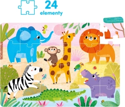 Disfruta con grandes puzzles bellamente ilustrados que representan animales favoritos de la sabana africana. Los puzzles no solo preparan a los niños para una aventura asombrosa, sino que también son un excelente regalo educativo. A partir de los puzzles, los niños aprenden sobre formas y colores, desarrollan su imaginación y aprenden a concentrarse. Los puzzles ayudan a relajarse y enseñan paciencia.