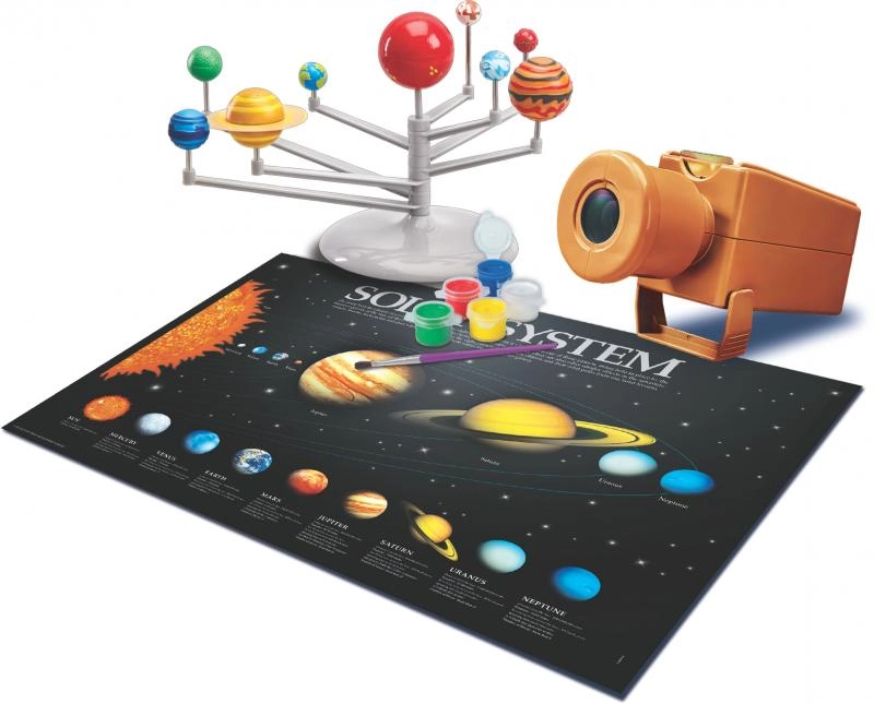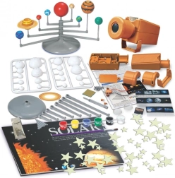 Con este set educativo, los niños conocerán de forma amena los principios de la ciencia y la exploración espacial. Construirán su propio modelo del sistema solar, comprenderán la acción y reacción al lanzar un cohete y, con el proyector, echarán un vistazo a las profundidades del cosmos. También incluye estrellas que brillan que, tras cargarse con luz, emiten un brillo suave y transforman la habitación infantil en un cielo nocturno.