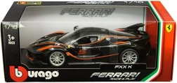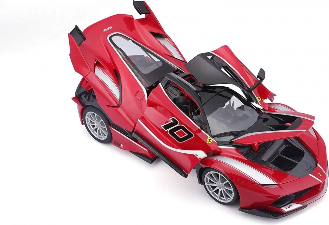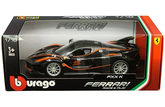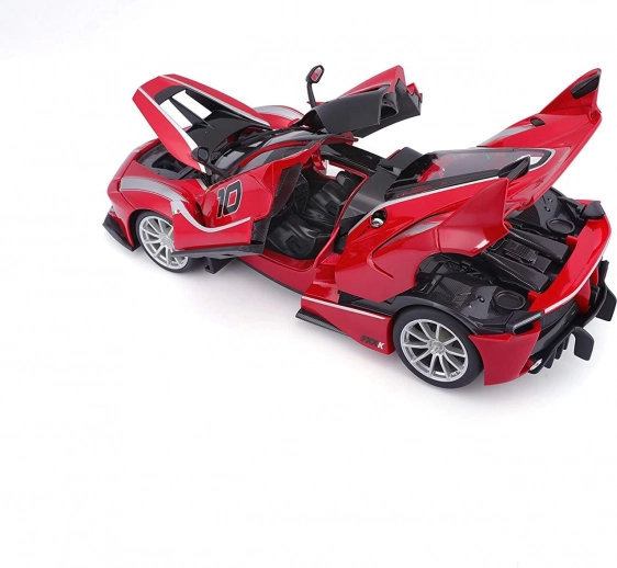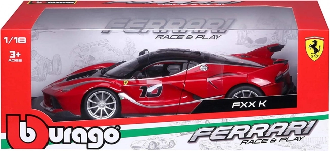 Modelo de colección del Ferrari FXX K a escala 1:18 de la marca Bburago, que ofrece un acabado preciso de la carrocería, interior detallado y compartimento del motor. Construcción metálica con piezas de plástico, partes abatibles y dirección y suspensión funcionales, lo que lo convierte en una pieza ideal tanto para la vitrina como para explorar la técnica de forma lúdica.