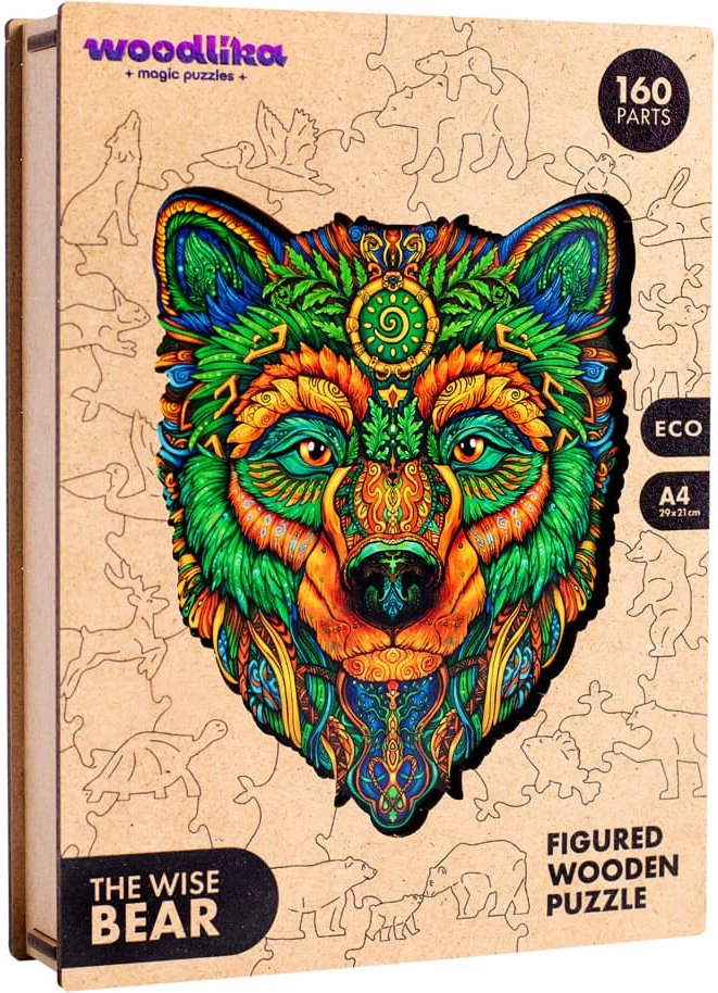 Rompecabezas de madera único con el motivo Oso Sabio que aporta un nuevo desafío gracias a piezas con formas especiales y detalles resaltados con láser. Disfruta armándolo con bordes suaves y un acabado de alta calidad.