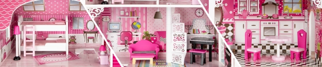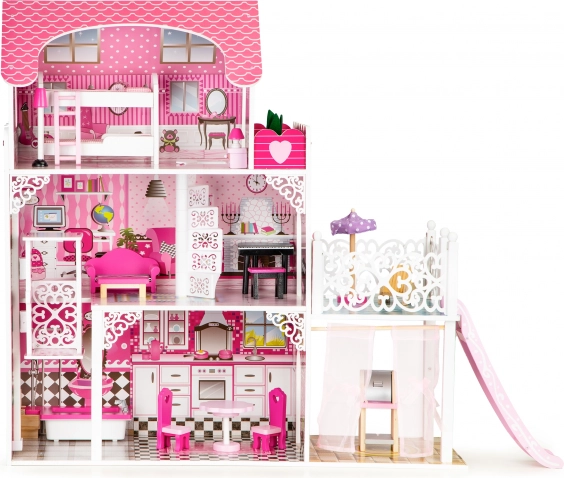 La casa de muñecas ECOTOYS es un lugar ideal para todas las pequeñas amantes del juego imaginativo. Ofrece 3 niveles independientes y un total de 7 habitaciones, que imitan a la perfección una vivienda real. Cada habitación está decorada en un estilo diferente, lo que permite a los niños jugar a ser diseñadores de interiores y organizar los muebles según su propia imaginación.