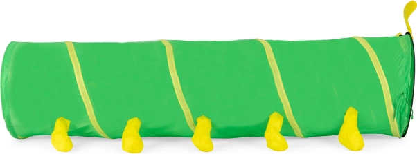 Su práctica estructura auto desplegable permite un uso inmediato: solo hay que sacarlo del estuche y el túnel se abre solo hasta alcanzar el tamaño completo de 180 × 47 × 47 cm. El material resistente es apto para jugar en interiores y exteriores, y su bajo peso facilita el transporte y el almacenamiento.