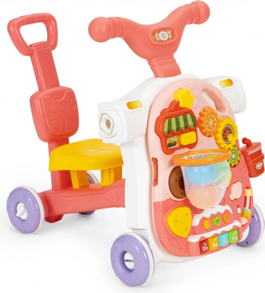 Cuando el niño es mayor y más independiente, el juguete puede convertirse en un patinete. Está equipado con un manillar cómodo y ruedas resistentes, lo que permite paseos más largos al aire libre, mientras desarrolla la forma física y el equilibrio.