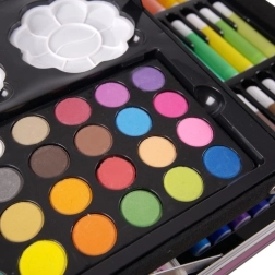 - 28× lápices de colores, 33× rotulador, 24× pastel al óleo, 24× acuarela, 24× pintura acrílica, 2× goma, 2× paleta, 2× lápiz, 4× pincel, 1× sacapuntas, 1× maletín