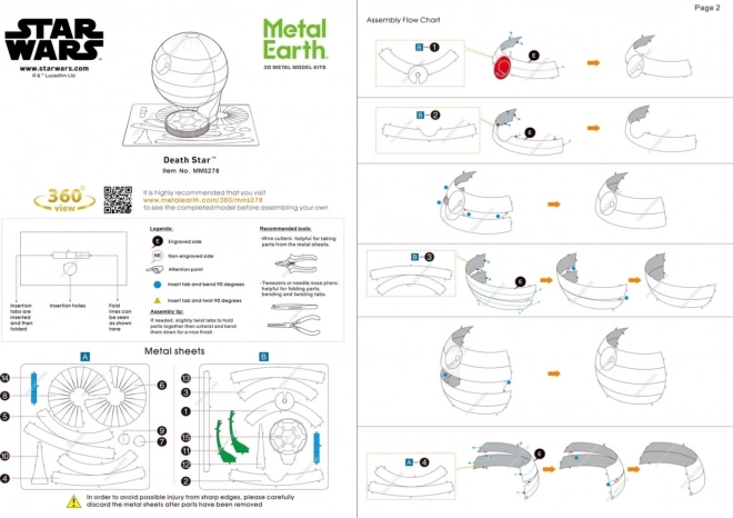 Este detallado modelo metálico de la legendaria Estrella de la Muerte está fabricado con láminas finas de acero con grabado láser, que realzan las texturas y el panelado auténticos. El montaje complacerá a cualquiera que busque relajación creativa y quiera crear una pieza de colección con un marcado efecto de exhibición.