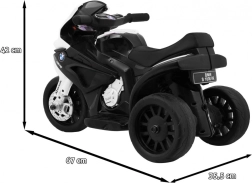 Disfruta de los primeros paseos con la compacta moto eléctrica BMW S 1000 RR mini. Gracias a sus tres ruedas, es muy estable, fácil de manejar y perfecta para principiantes. Las luces LED delanteras y los efectos de sonido auténticos en el manillar aportan una experiencia realista.