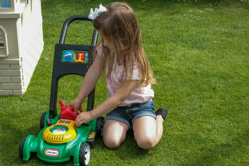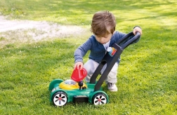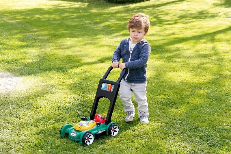 Al empujar el cortacésped, los niños mejoran el equilibrio, la coordinación y la motricidad gruesa, y desarrollan autonomía.