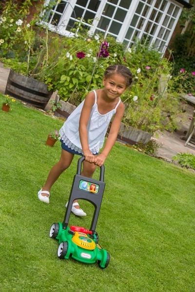 Los efectos de sonido integrados imitan un cortacésped de verdad y estimulan la imaginación y un juego más prolongado.