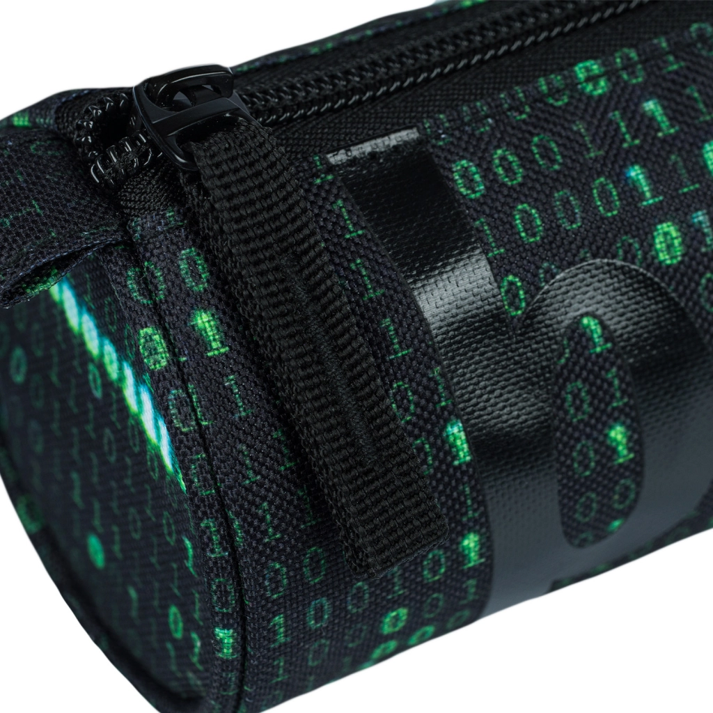 Elegante estuche para estudiantes con motivo de código binario, ideal para el día a día en la escuela y la oficina. Ofrece cierre práctico con cremallera, material textil resistente y forma compacta para organizar lápices, bolígrafos y pequeños objetos de manera clara.