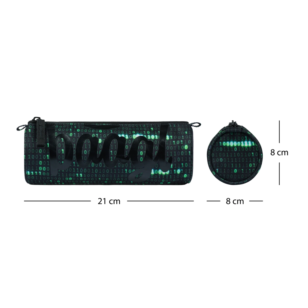 Descubre el moderno estuche para estudiantes Baagl Numbers con un llamativo diseño digital en combinación verde‑negro. Este resistente estuche textil con una cremallera fiable mantendrá tus útiles de escritura y pequeños objetos seguros y bien organizados, sin ocupar espacio innecesario en la mochila.