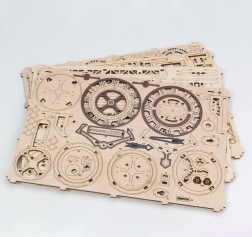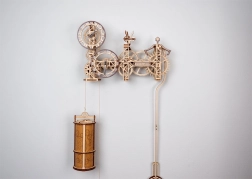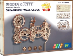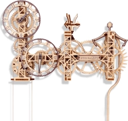 Descubre la unión de ciencia y arte en el modelo de madera 3D del reloj de pared STEAMPUNK WOODEN CITY. Ensambla 269 piezas cortadas con precisión de contrachapado de abedul en una máquina mecánica funcional con péndulo y ajuste de marcha. Una vez dado cuerda, el reloj funciona de forma fiable hasta 12 horas y fascina a cualquier amante del diseño y la técnica.