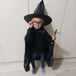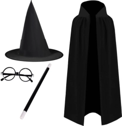 Este estiloso disfraz de mago ofrece todo lo que los niños necesitan para crear un disfraz llamativo y seguro. La ligera capa de material agradable cae elegantemente y, gracias al lazo, se sujeta bien en su lugar. El sombrero puntiagudo se despliega solo al sacarlo y crea un efecto “wow”. Las gafas redondas sin lentes son cómodas y seguras para jugar, y la varita de plástico resistente complementa a la perfección cada truco.