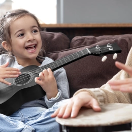 Descubre la alegría de la música con un ukulele infantil que luce y se comporta como un instrumento de verdad. Gracias a las clavijas de afinación y a las cuerdas de nailon, los niños aprenden a tocar canciones sencillas y mejoran su técnica poco a poco. Su tamaño compacto y el cuerpo de madera resistente garantizan un agarre cómodo y una larga durabilidad.