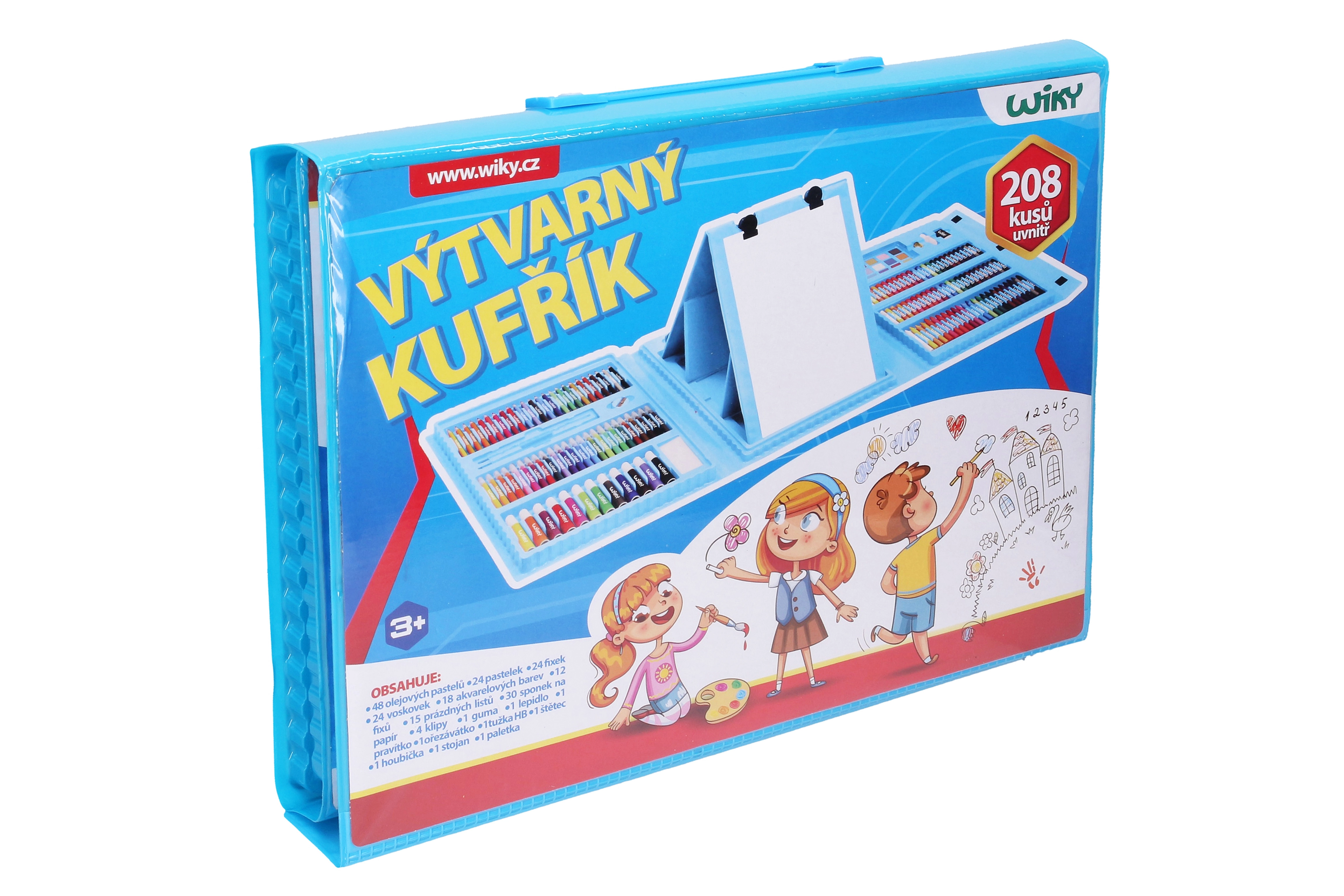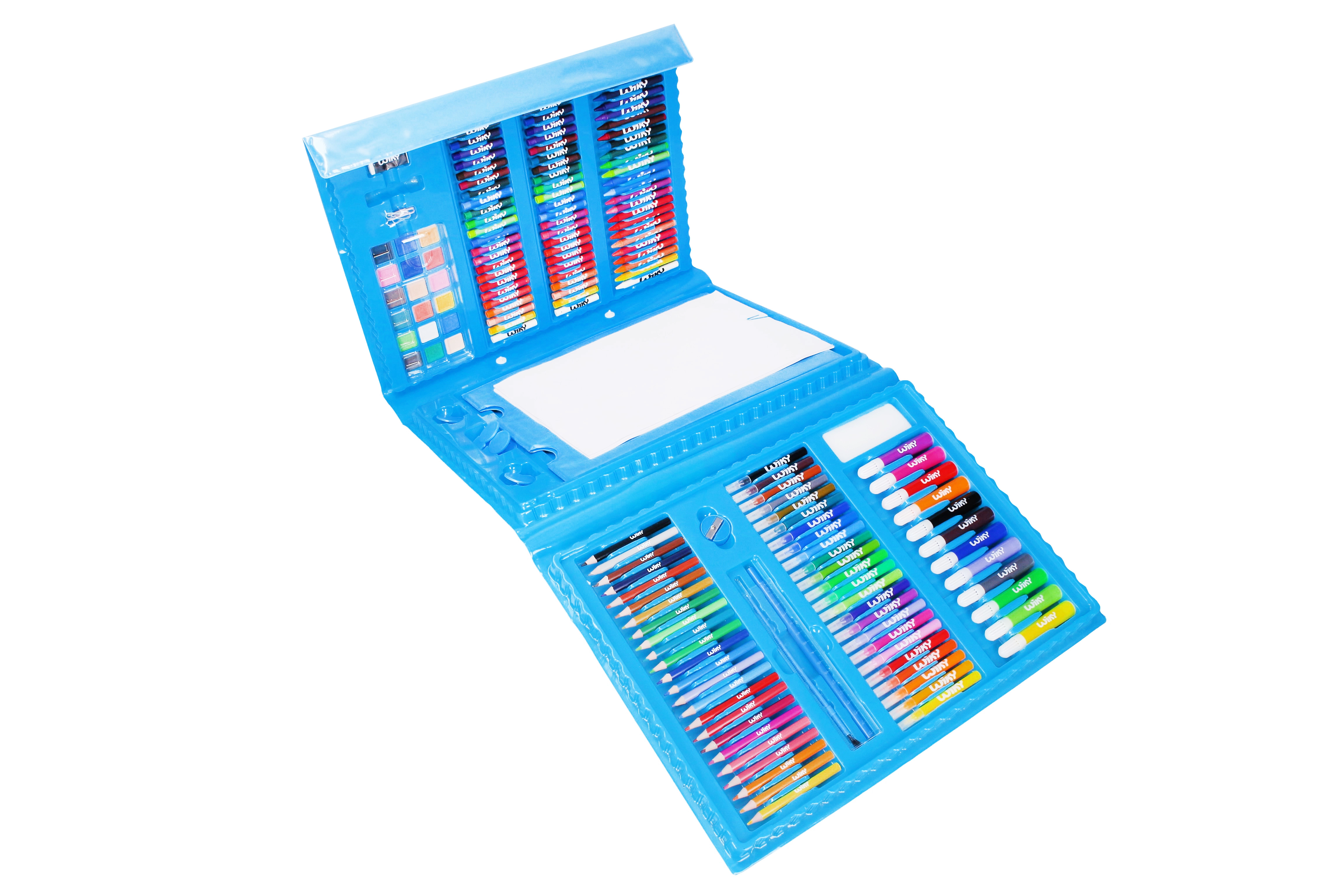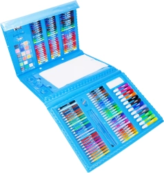 Completo set de arte de 208 piezas en un práctico maletín para creadores pequeños y grandes. Incluye pasteles al óleo, lápices de colores, rotuladores, ceras y acuarelas y un amplio accesorio para dibujar y pintar en casa, en la escuela y de viaje.