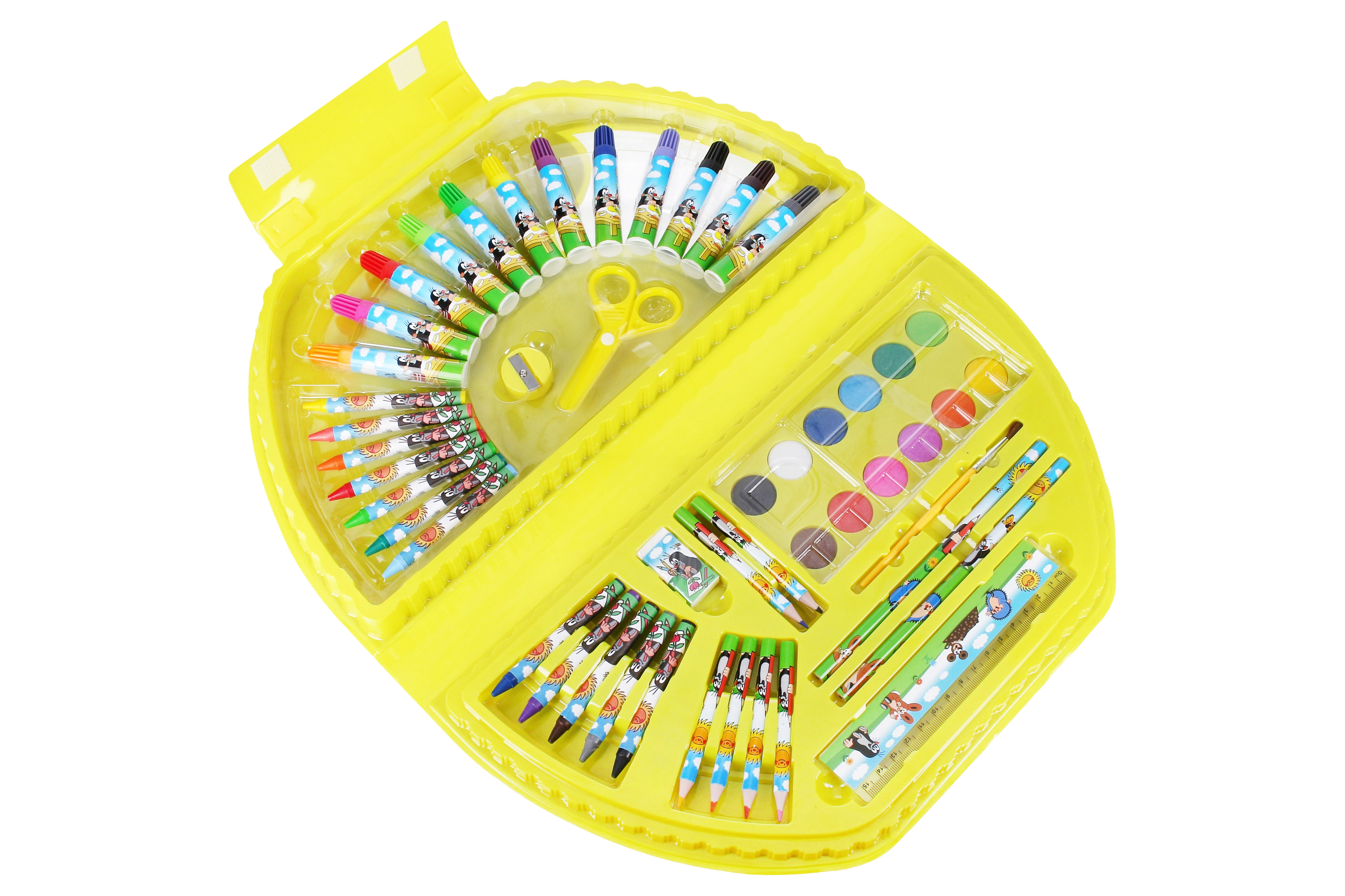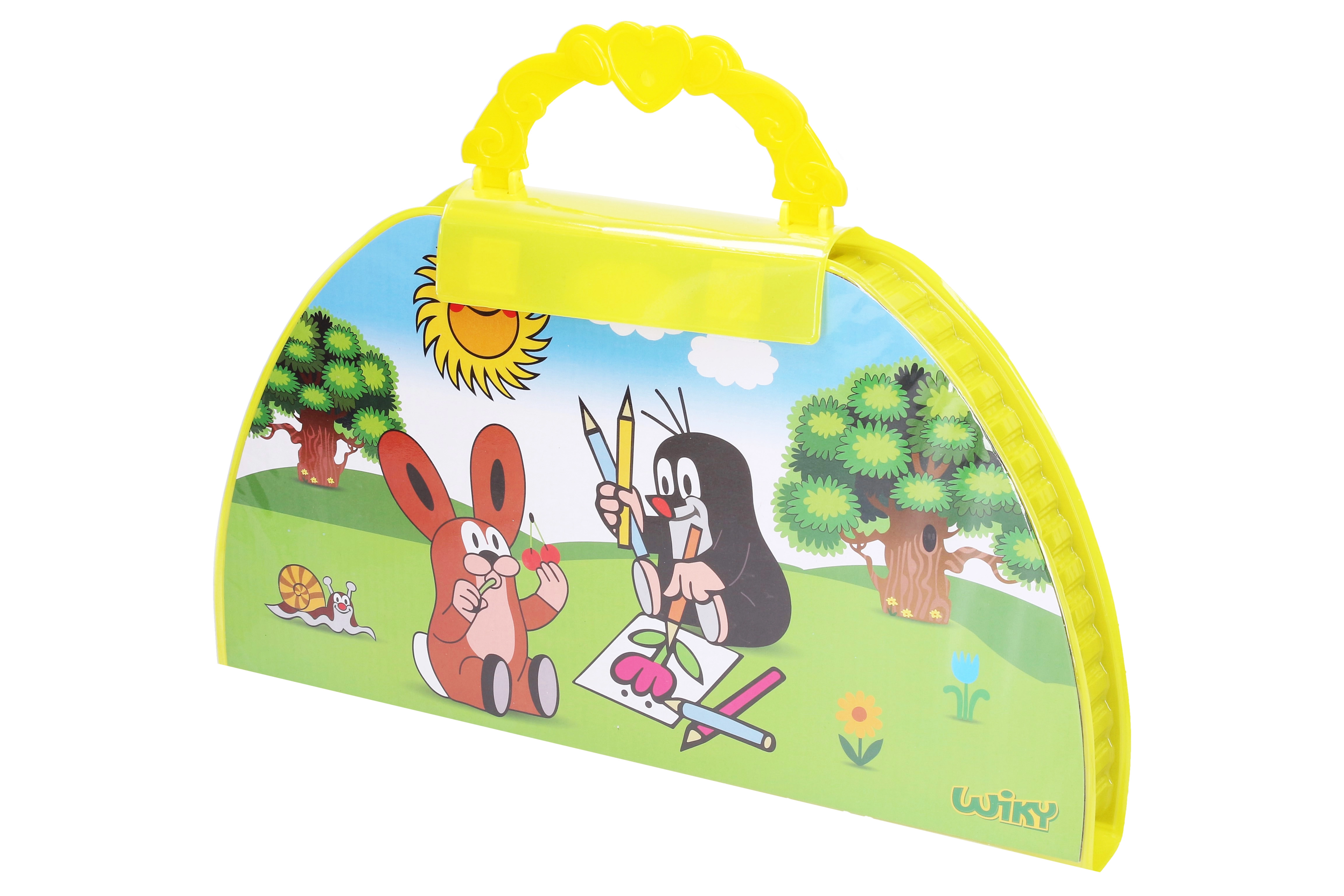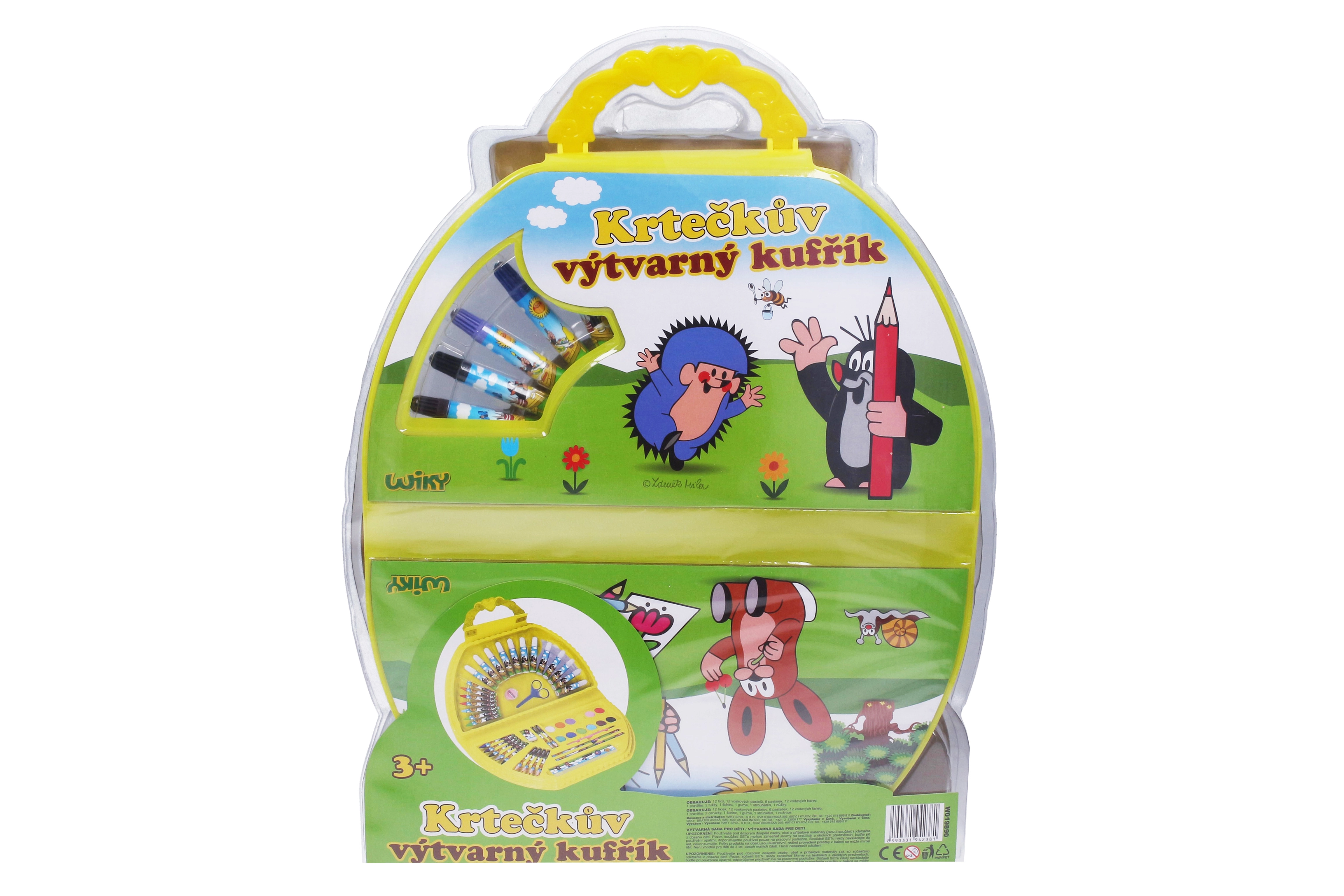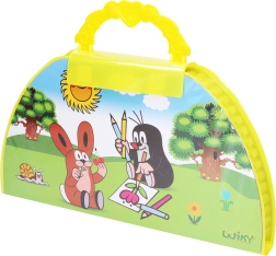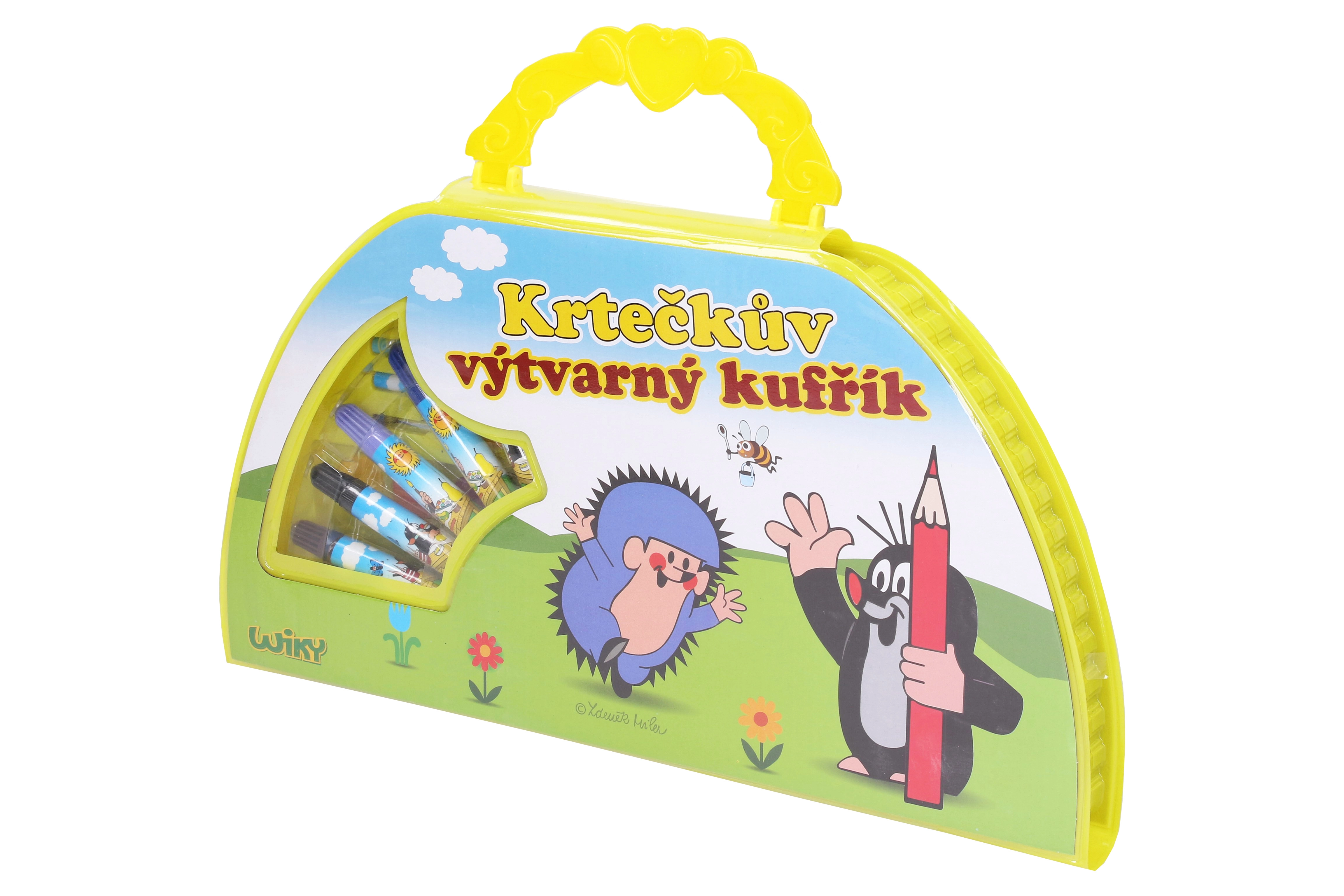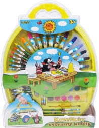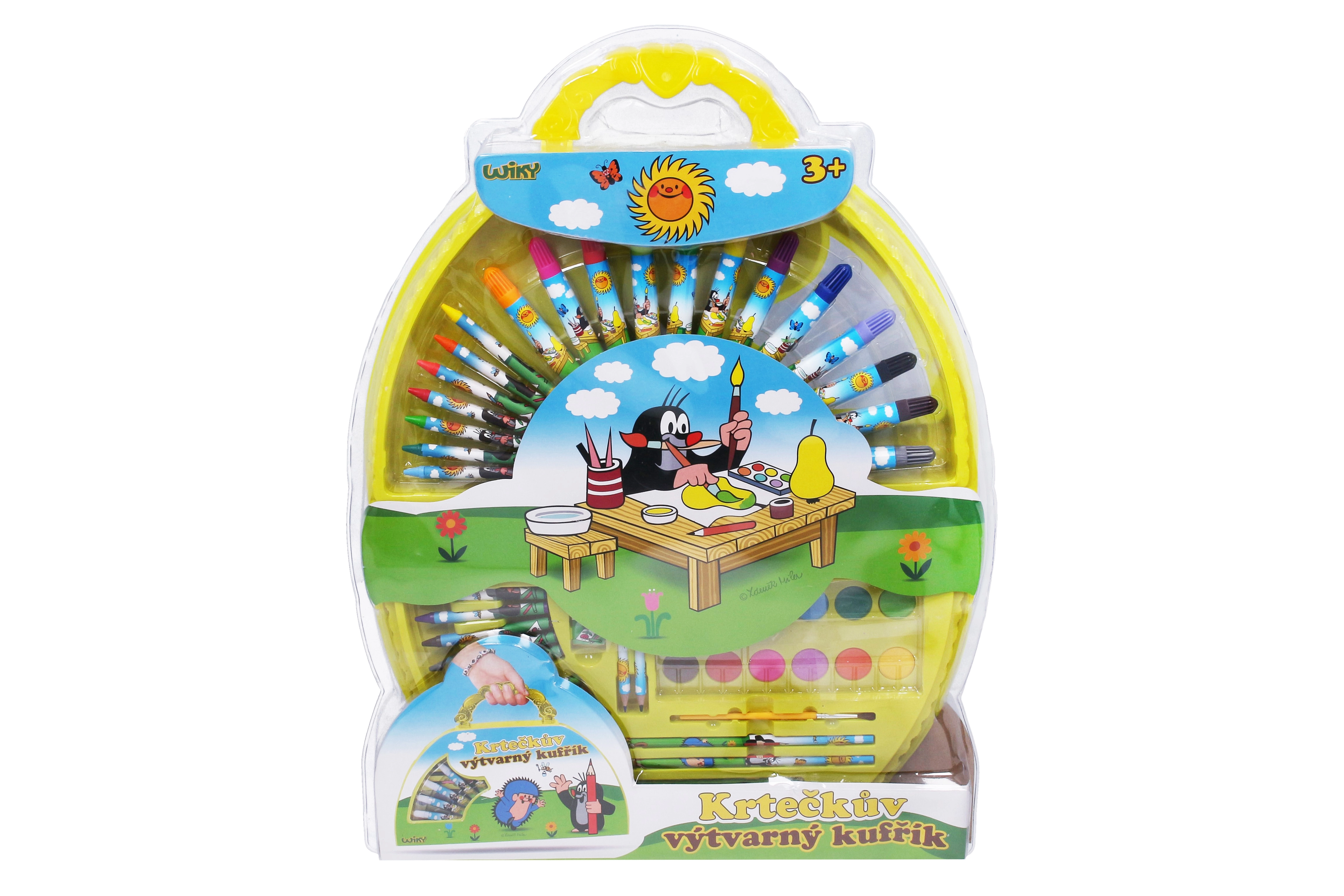Práctico y divertido maletín con el motivo de KRTEČEK que ofrece un set de 50 piezas de material de arte para pequeños artistas. Incluye rotuladores, ceras, lápices de colores, acuarelas y accesorios imprescindibles como regla, lápices, pincel, goma, sacapuntas y tijeras, todo bien organizado y listo para crear en casa o de viaje.