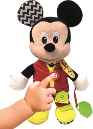 Este suave peluche con la querida figura de MICKEY está diseñado para motivar a los niños a aprender de forma natural mediante el juego. Las distintas texturas y materiales despiertan el tacto, mientras que acciones sencillas como cerrar la cremallera o abotonar desarrollan la coordinación ojo–mano y la paciencia.