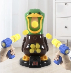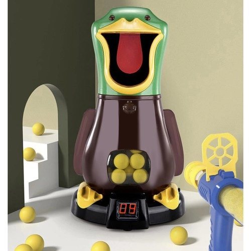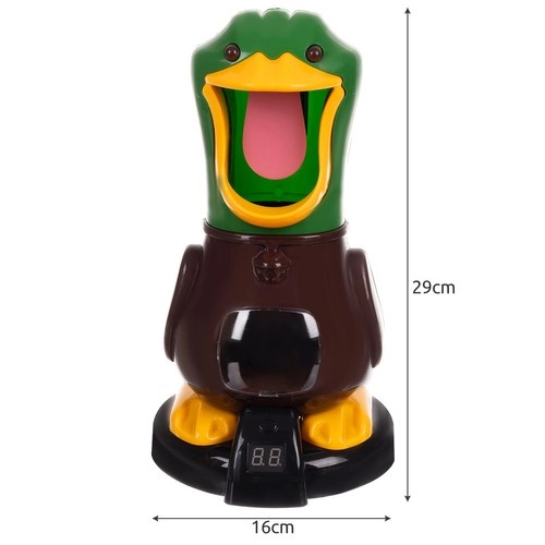 El juego Pato hambriento convierte el salón en una galería de tiro llena de diversión. El pato grazna al acertar y en la gran pantalla LCD suma un punto, así que siempre tienes el marcador bajo control. Gracias a las pelotas de espuma suaves, el juego es seguro para niños y apto para usar en interiores.