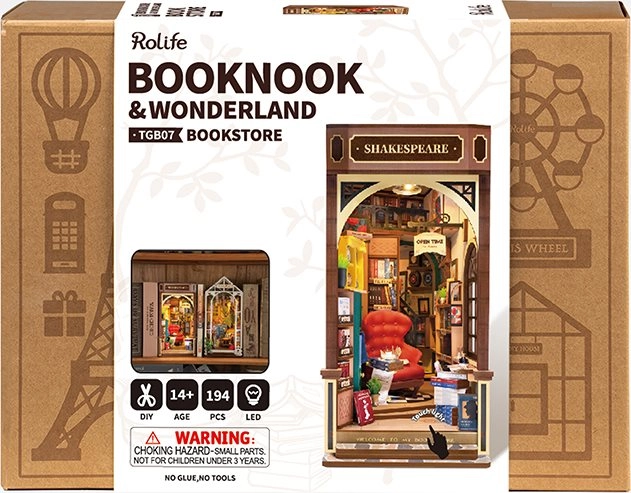 Descubre el mágico mundo de la literatura con la miniatura de la librería “Librería de Shakespeare”, que combina encanto retro y diseño artístico. Este set meticulosamente elaborado incluye todas las piezas necesarias, desde antiguas vidrieras de colores hasta un sofá de terciopelo rojo, y te permite recrear tu librería favorita.