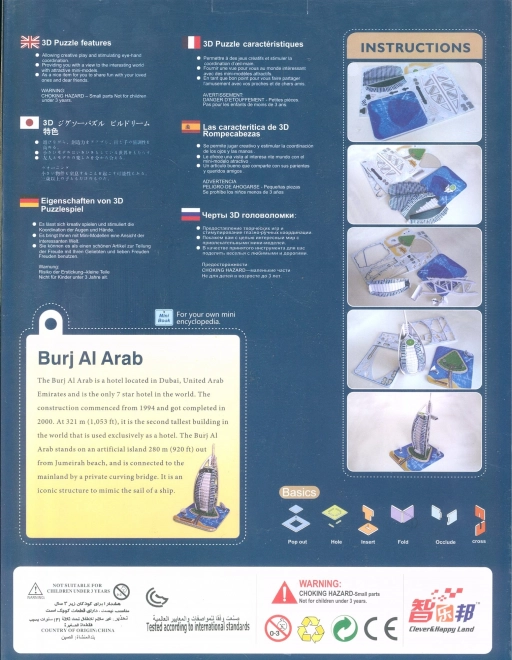 El rompecabezas 3D Burj Al Arab sin duda deleitará a cualquier amante de la arquitectura. Este detallado modelo 3D del icónico hotel, conocido como la vela, trae un pedacito de Dubái directamente a tu hogar.
