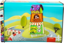 El set incluye 10 plantillas de papel sobre cuya base se pueden construir las casitas. Las piezas magnéticas de cartón rígido con superficie brillante se pueden limpiar fácilmente con un paño húmedo. Fabricado con madera ecológica y destinado a niños a partir de 3 años. Fabricado en Europa.