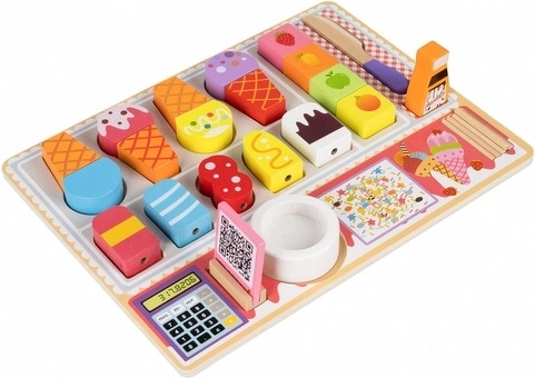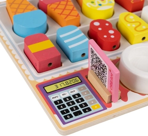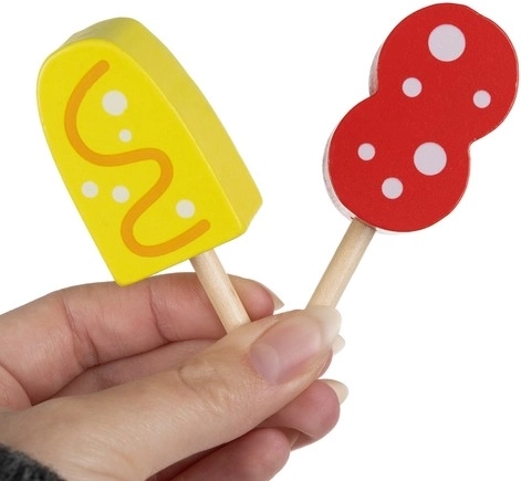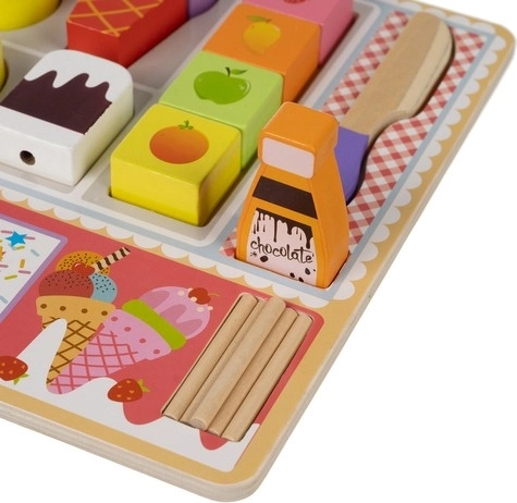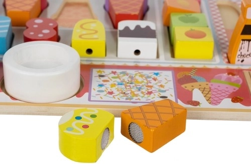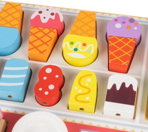 Esta elegante heladería de madera ofrece a los niños la auténtica atmósfera de una tienda de dulces. Gracias a sus colores vivos y a las múltiples combinaciones de helados, los niños aprenden a reconocer colores, formas y tamaños y desarrollan de forma natural habilidades cognitivas y sensoriales. Las piezas de madera se adaptan cómodamente a manos pequeñas y favorecen el agarre correcto y la paciencia al apilar bolas y polos.