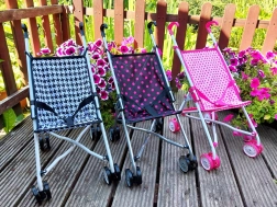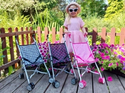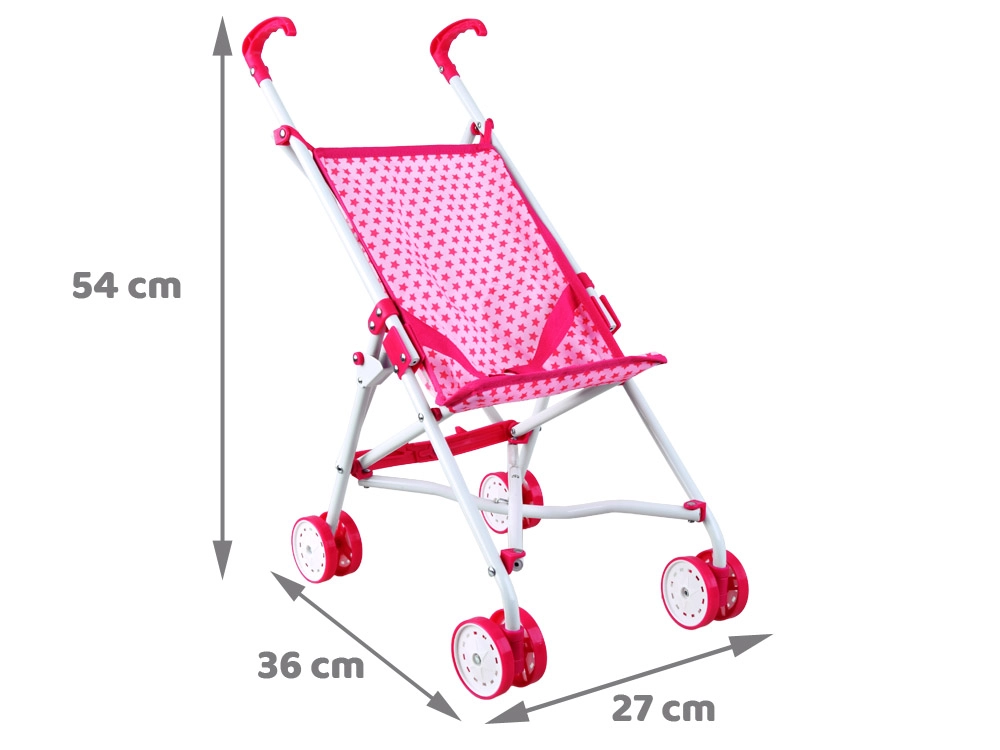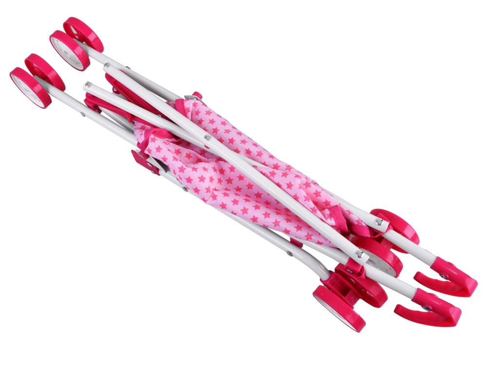 Carrito plegable ligero y práctico para muñecas o peluches. Un accesorio ideal para el juego infantil, permite transportar de forma segura y cómoda los juguetes favoritos durante los paseos.