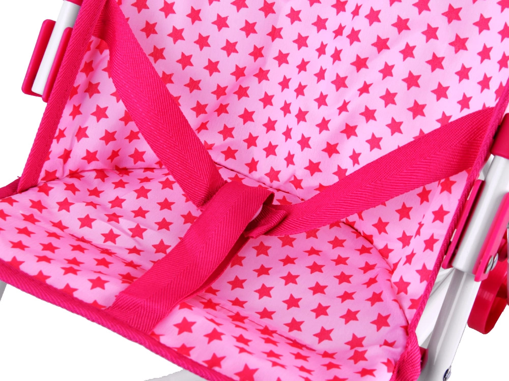 El carrito para muñecas está diseñado para ofrecer una experiencia de juego inolvidable. Gracias a su estructura ligera y al fácil plegado/desplegado, se transporta y guarda sin esfuerzo. El diseño rosa con estrellitas aporta un encanto que apreciará cualquier pequeña cuidadora.