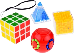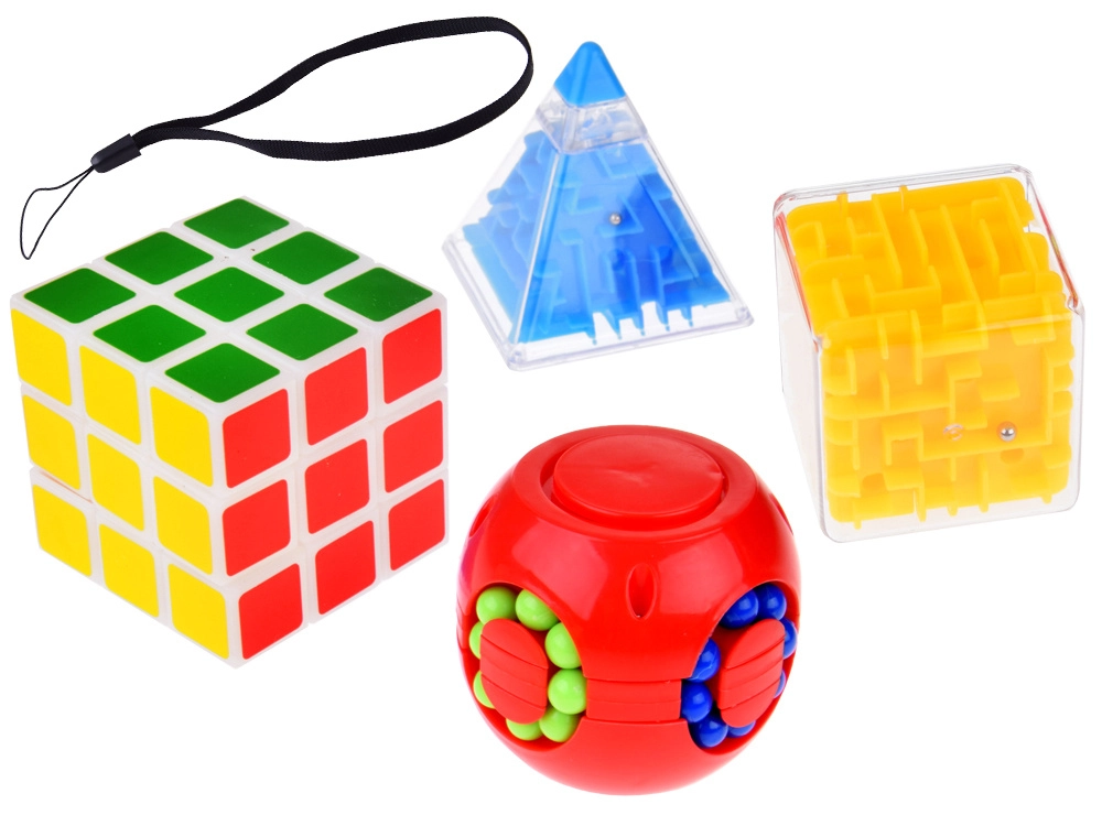 El juego incluye cuatro juguetes únicos que mejoran la concentración y las habilidades motoras de las manos. Ideal para la relajación y para ejercitar el pensamiento lógico.