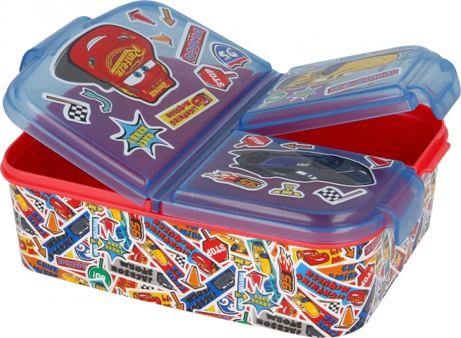 Presentamos una práctica y elegante caja para merienda que encantará a todo pequeño fan de la película 'Cars'. Está fabricada con material resistente que soporta golpes y caídas. Ofrece tres compartimentos separados, ideales para guardar distintos alimentos por separado, como fruta, sándwiches u otros snacks. El diseño con los personajes favoritos de 'Cars' hará que los niños la adoren.