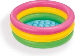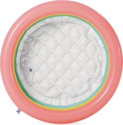 Brinda a tus hijos diversión bajo el sol con esta piscina inflable, ideal para juegos acuáticos al aire libre. Está fabricada en vinilo resistente y equipada con tres anillos en colores alegres. Gracias a su fondo inflable blando, es cómoda y segura para los niños, que adorarán chapotear en el agua.