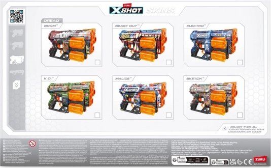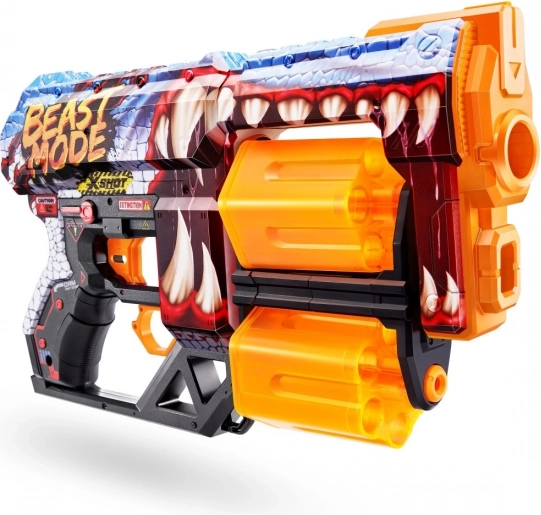 Prepárate para duelos llenos de adrenalina con el bláster X-SHOT SKINS DREAD en el llamativo skin beast mode. Dos tambores giratorios independientes ofrecen en total 12 disparos rápidos: cuando vacíes uno, basta con cambiar para seguir en acción sin demoras. El diseño ergonómico y la construcción ligera garantizan un agarre cómodo incluso en sesiones de juego prolongadas.