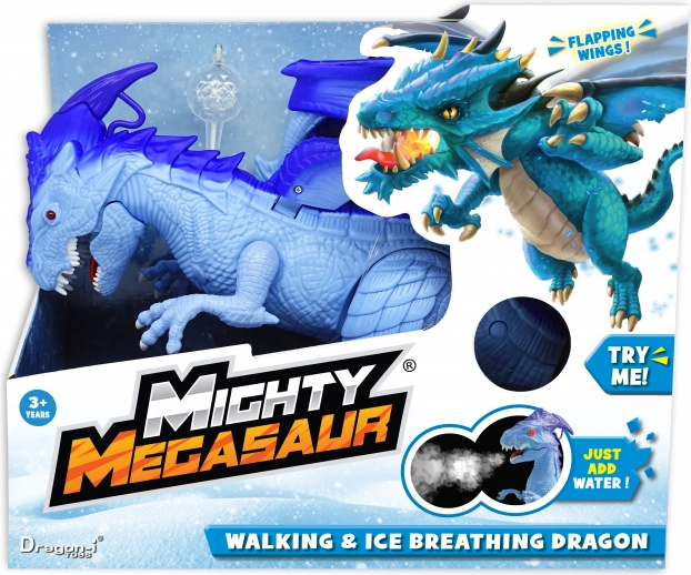 Descubre al realista dinosaurio/dragón MIGHTY MEGASAUR, que se mueve, ruge y tiene ojos luminosos. Con el mando a distancia activarás el rugido potente, la marcha y los efectos de luz. El juguete desarrolla la motricidad fina y la imaginación de los niños y ofrece una emocionante aventura prehistórica.
