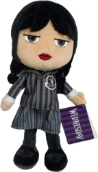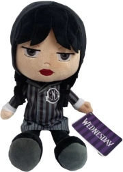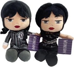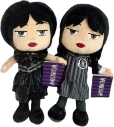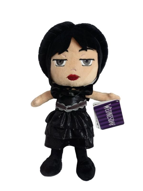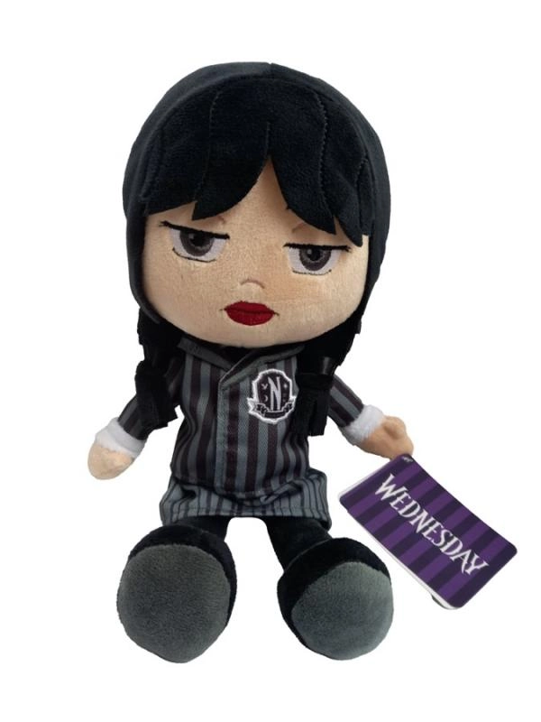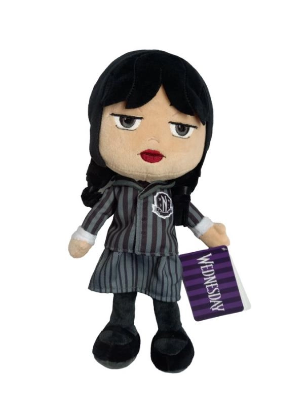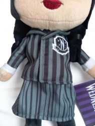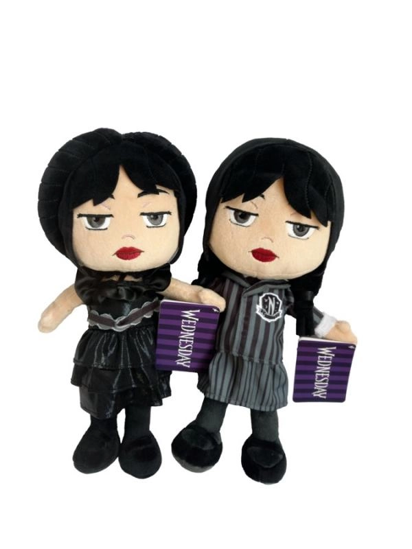 Descubre la magia de la querida heroína televisiva con nuestra elegante muñeca de peluche de Wednesday Addams. Esta muñeca de 32 cm está fielmente recreada con dos atuendos icónicos: el uniforme escolar gris de Nevermore y el extravagante vestido negro que lució en el Nevermore Rave'N Dance.